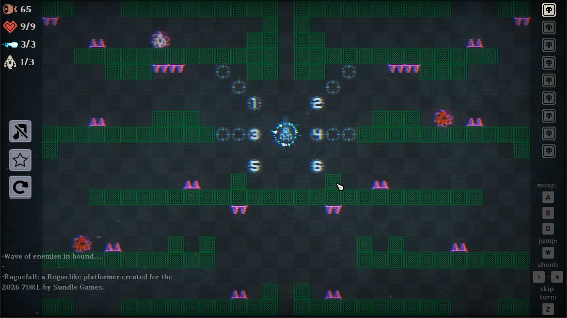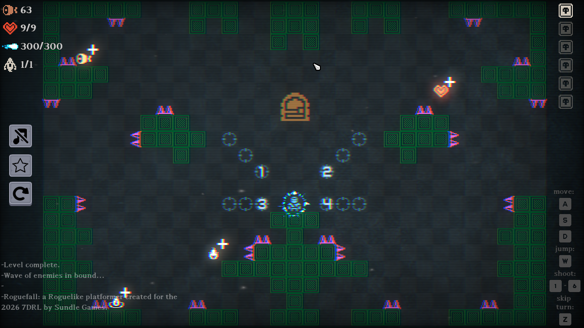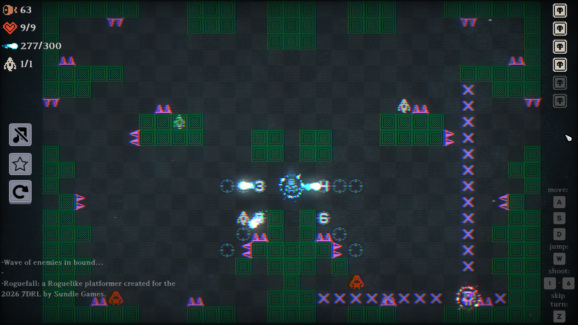 Roguefall - a short, turn based Roguelike platformer.